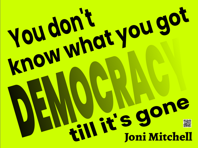 Our Goals: A Sea of Signs everywhere in America, to proclaim our love for and our fight for our Democracy….grounded in all that is good. Encourage courageous speech, critical thinking, altruism and morality in the democratic process. With justice, equality, humanity and liberty for all.